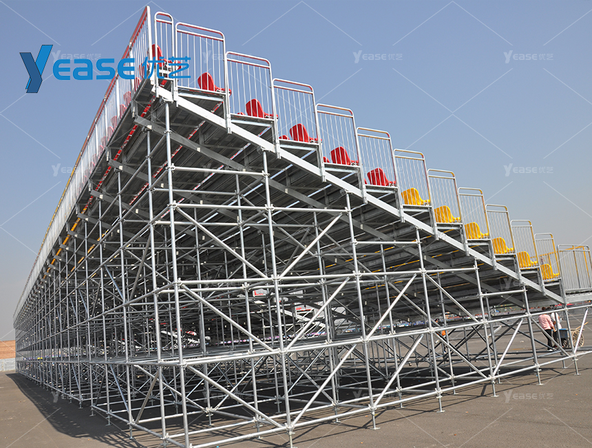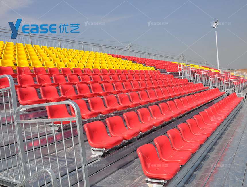 堅固耐用的鋼結構看臺系統(tǒng),滿足戶外場館長期使用與高承載要求。
