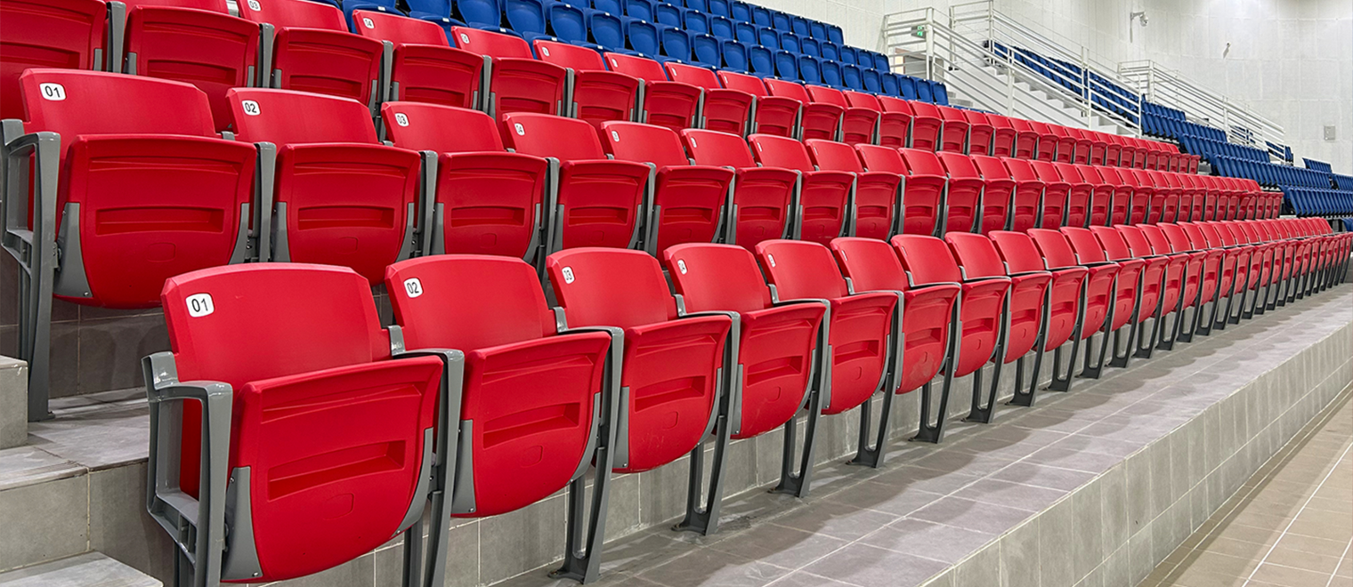說明:座椅可實現立裝、側裝兩種安裝方式以滿足不同場地的要求,翻折式座椅能為場地提供更充足的入席空間,場地適應性更佳,座椅可選配軟包以滿足更高的使用要求,座椅采用高密度聚乙烯(HDPE)為原料,中空吹塑一體成型,該材料具有良好的防水性與抗沖擊性,機械強度和化學穩(wěn)定性好,具有良好的耐候性(耐熱性和耐寒性),座椅顏色選用專業(yè)著色母粒,可保證顏色持久靚麗,座椅顏色可根據客戶要求定制,可針對不同場地特性設計個性化配色方案。