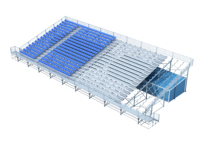 產品特點:主要結構(斜梁、立柱)采用承載能力強勁的H型鋼,可滿足高排數、挑高、大開間設計需求,其底部空間可多元化利用,增設儲物間、休息室、多功能房等,是室外大型看臺系統(tǒng)首選。